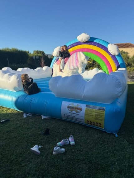 El inflable Arco Iris llena de color y alegría cada fiesta. Con sus nubes, toboganes y obstáculos suaves, los niños disfrutan de una experiencia mágica, divertida y totalmente segura.