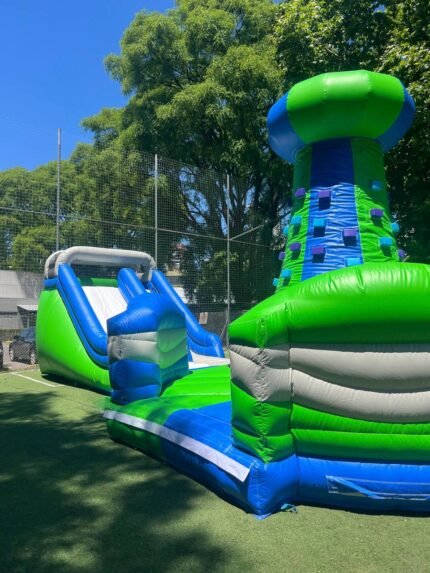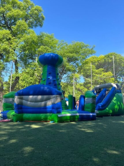 Súper Blue es un inflable mega completo con circuito, tobogán y escalada, ideal para eventos grandes donde la diversión, el desafío y el impacto son protagonistas.