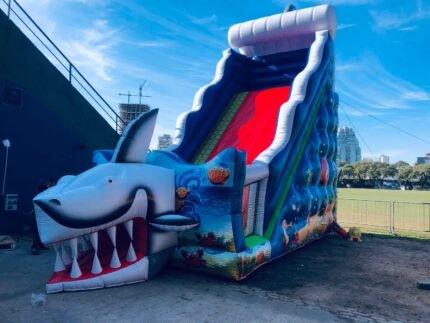 “El Tiburón es pura adrenalina y diversión: un inflable gigante con diseño impactante que invita a trepar, deslizarse y vivir una experiencia inolvidable en cada fiesta o evento.”