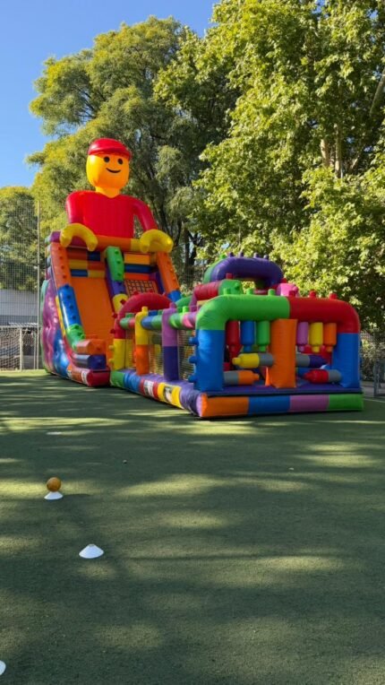 Súper Lego Extreme es un mega circuito inflable con obstáculos, escalada y tobogán, ideal para eventos grandes donde la experiencia, el impacto y la diversión están al máximo nivel.