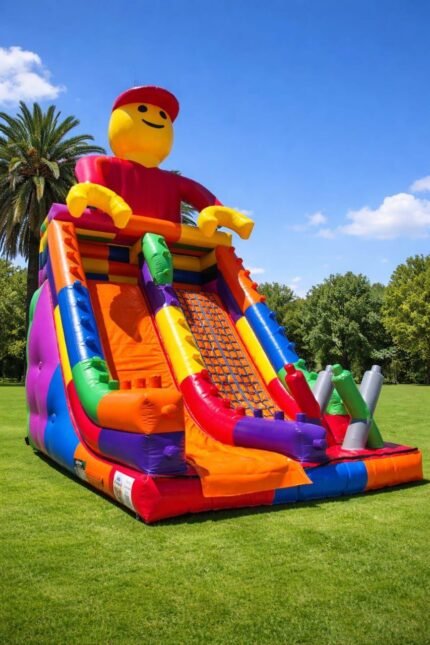 Súper Lego es un inflable gigante con temática impactante y gran altura, ideal para eventos donde la adrenalina, el desafío y el efecto wow son protagonistas.