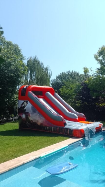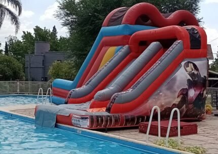 El Tobogán Iron Man lleva la acción de los superhéroes a tu fiesta. Con colores impactantes y diseño exclusivo, es ideal para deslizarse y vivir una experiencia llena de adrenalina.