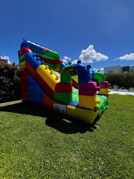 “El Tobogán Lego es diversión a todo color: un inflable único que combina trepadas, obstáculos y deslizamientos. Perfecto para que los chicos vivan una aventura llena de alegría y creatividad.”