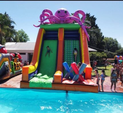 “El Tobogán Miami es pura alegría tropical: colores vibrantes, palmeras inflables y diversión asegurada. Ideal para eventos donde los chicos quieren trepar, deslizarse y refrescarse con mucha adrenalina.”
