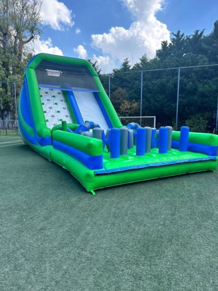 El inflable London Extreme combina emoción y color en un recorrido lleno de desafíos. Con su gran diseño y estructura segura, es ideal para que los niños disfruten saltando y jugando sin parar.
