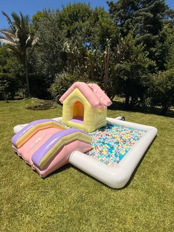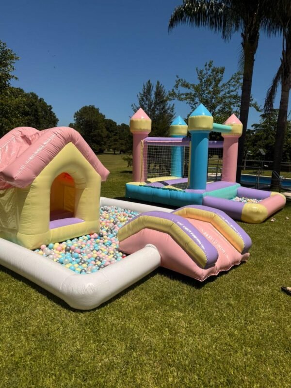 El inflable Arco Iris llena de color y alegría cada fiesta. Con sus nubes, toboganes y obstáculos suaves, los niños disfrutan de una experiencia mágica, divertida y totalmente segura.